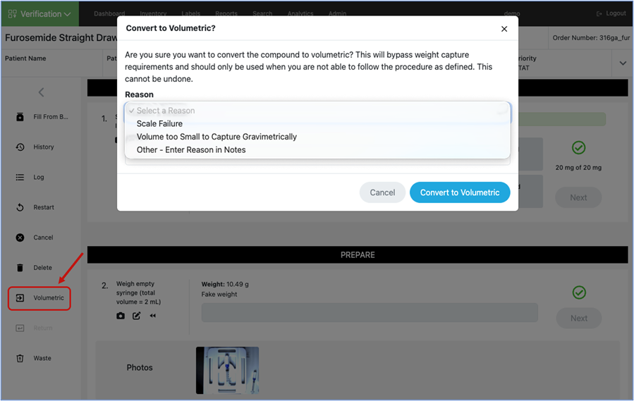The Guided Workflow medication workflow system enables enforced, step-by-step preparation.