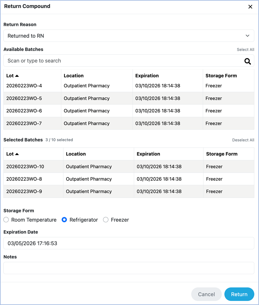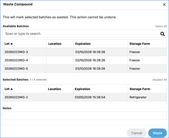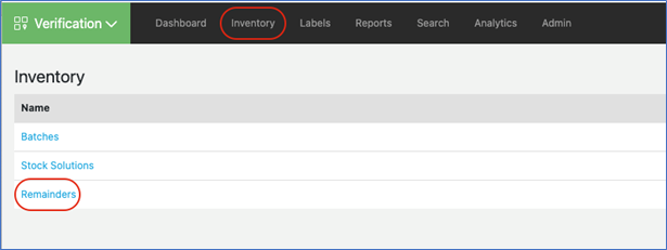 The Inventory page provides the ability to view and edit stock solutions, batches, and remainders created in the system.
